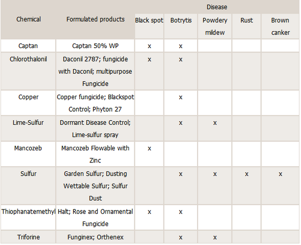 Some Chemicals used to treat various rose diseases
